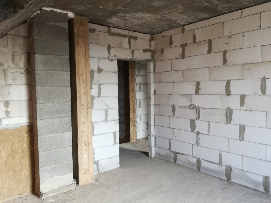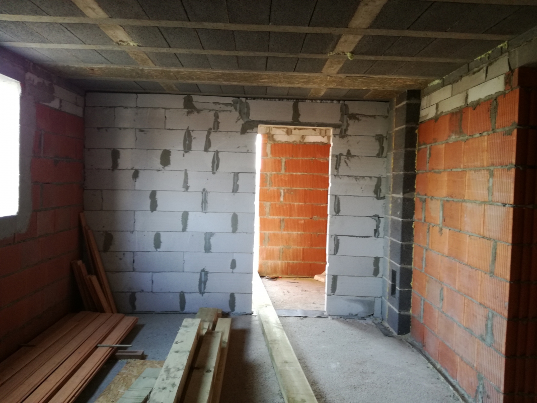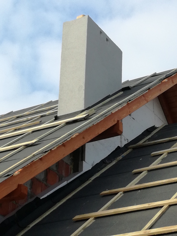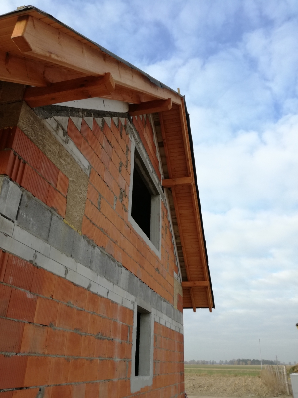 W międzyczasie budowlańcy wykonali resztę ścian działowych oraz ocieplenie i elewacje komina, a sami zamknelismy garaż aby nie wialo.